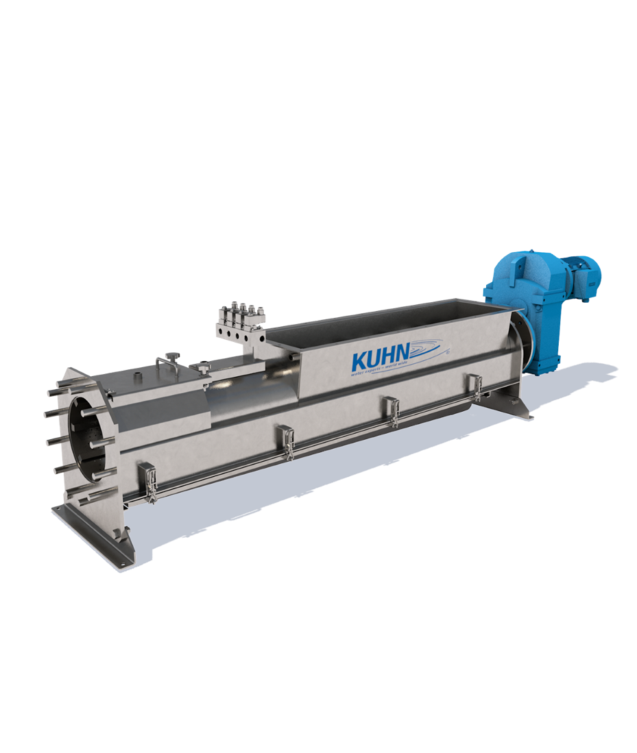 Der KUHN-Rechengutzerkleinerer KRZ zerkleinert äußerst zuverlässig Rechengut, das zuvor in einer unserer KUHN-Waschpressen KWP gewaschen, entwässert und verdichtet wurde. Dafür wird der KRZ direkt an das Pressrohr (Austragsrohr) einer Waschpresse angeflanscht. Im Inneren des Schneidegehäuses sorgen mehrgängige, seelenlose Schneckenwendeln für eine sichere Zerkleinerung des Rechenguts. Auf Wunsch kann dieses dann komplett gekapselt an weitere Anlagenteile oder Maschinen weitergegeben werden.